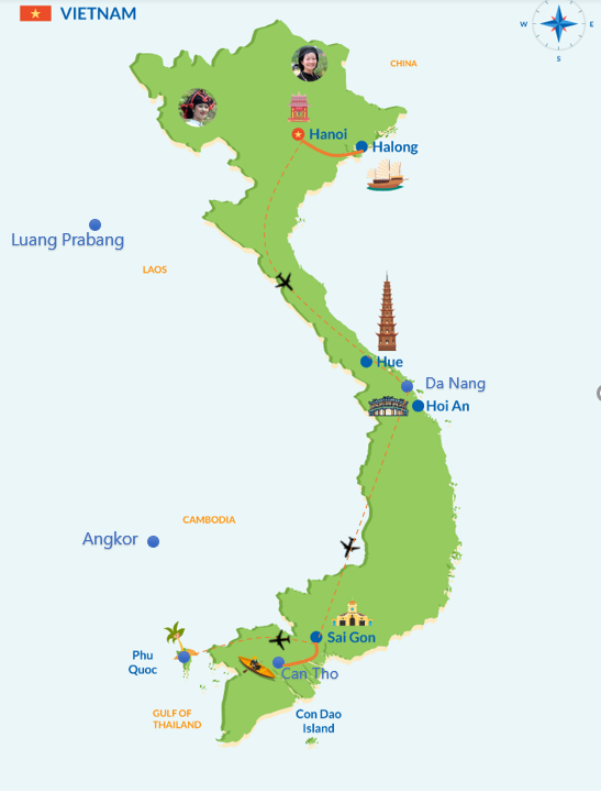 Hanoi et ses temples traditionnels; les maisons anciennes d’Hoi An, les vergers luxuriants du delta du Mékong; les hôtels de luxe sans oublier les paysages sublimes de la baie Halong… Ce voyage vous offre de nombreuses découvertes intéressantes en mode confortable.