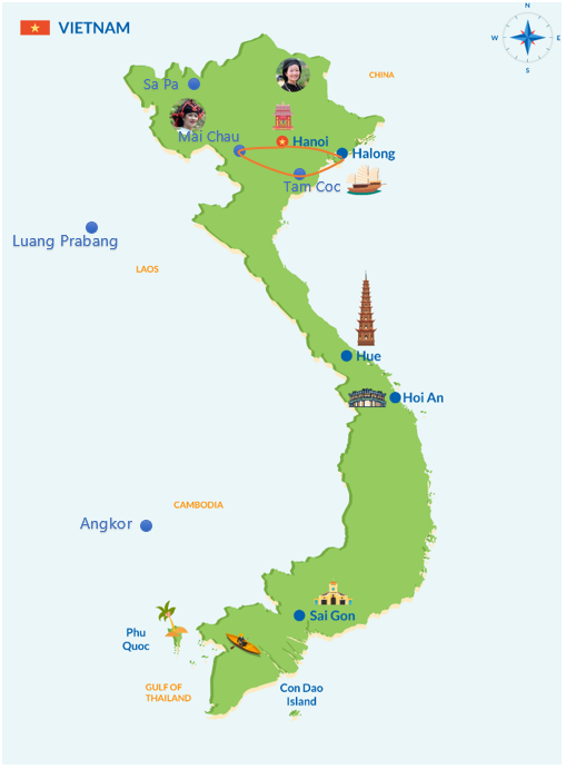 10h15 - 10h30: Débarquement, route pour Hanoi.
