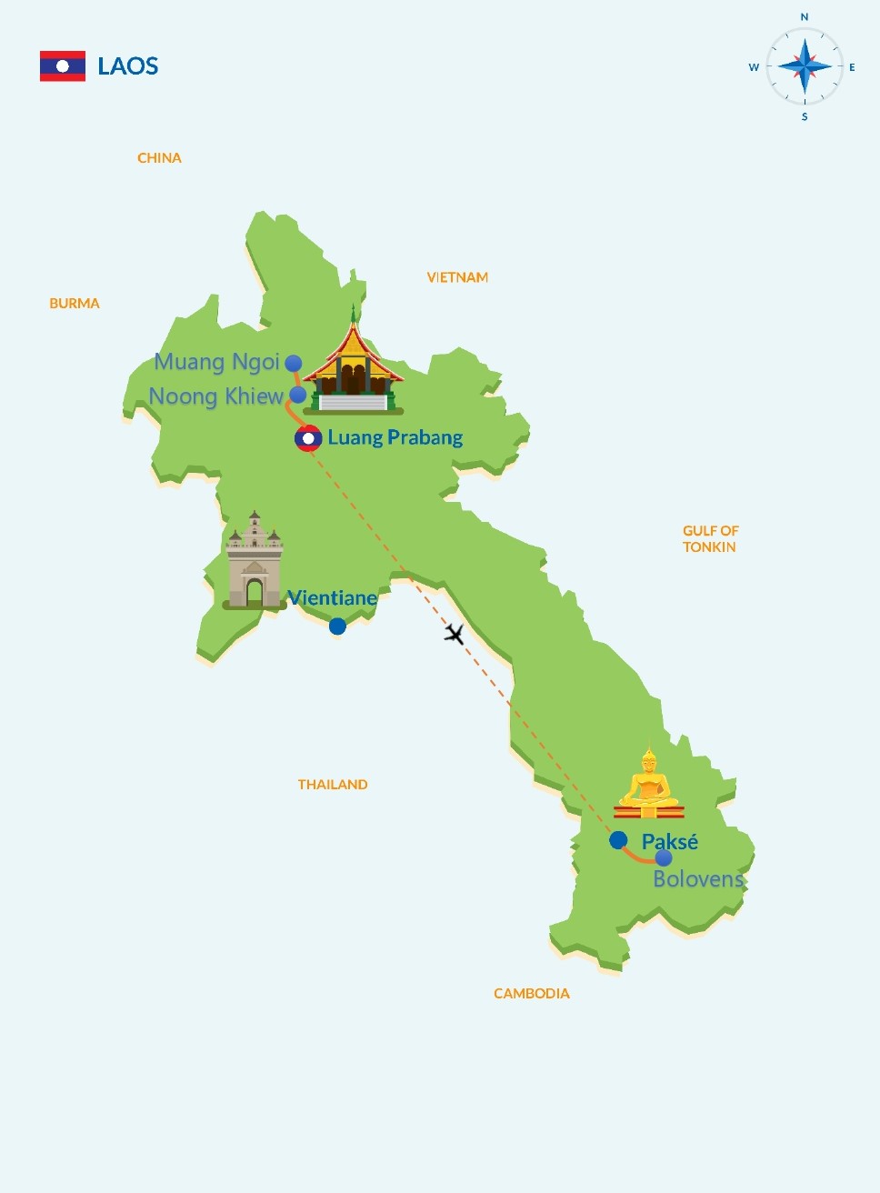 Des ethnies minoritaires au nord aux anciens temples de Luang Prabang; de la nature préservée à la vie quotidienne des villageois; des rizières verdoyantes aux cascades fascinantes au sud: des champs de maïs au nord à la culture de café sur le plateau des Bolovens… Ce trekking au Laos vous permet de pénétrer à l’intérieur des terres à la rencontre d’un peuple méconnu des voyageurs.